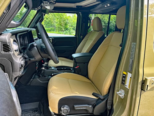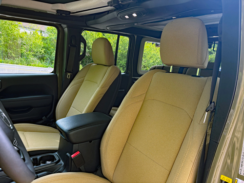 Interior: The outside may have a unique appeal, but so does the cabin. The tan interior is unlike anything I have experienced on a Jeep, and the dashboard is accented by an olive drab fabric.