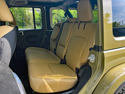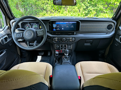 And the list of add-ons is extensive, with the highlights being the Willys ’41 package for $9,805 – which gives this Jeep its unique look, a $2,495 convenience group which includes things like heated front seats and steering wheel, remote start and dual zone climate control with automatic temperature control.  Other extras include the Technology Group, Safety Group, a Mopar hardtop headliner ($650), Mopar heavy−duty rock slider with step assist ($1,375) and a body-colour 3-piece hardtop ($3,095).