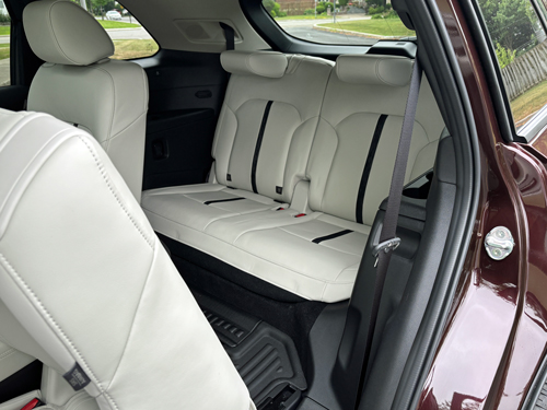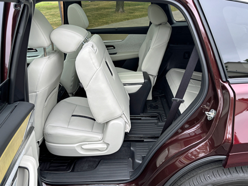 Cargo space is generous even with all three rows in use, but you nearly triple the available room when you lower the back bench. For even more room, the captain’s chairs can also be lowered.