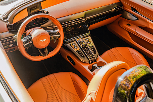 The specific Roadster I drove wore a striking California Sage exterior finish from the Provenance paint range and an All Centenary Saddle Tan semi-aniline leather interior. Optional carbon-ceramic brakes with bronze calipers provided unflinching stopping power, while 21-inch Y Spoke forged wheels in Satin Black DT gave the car a muscular stance. Inside, the Inspire Monotone interior package elevated the cabin’s tactile luxury, every surface a reminder that Aston Martin builds not just cars, but experiences.