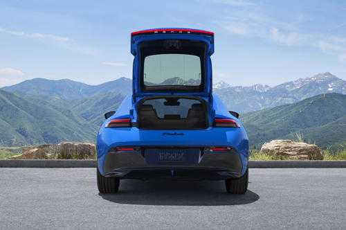 How driver-focused? Well, the prelude’s designers lowered the cowl, thinned out the A-pillar, flattened out the bottom of the steering wheel, added a blue centering band and dropped in a pair of racing-inspired seats with asymmetrical side-bolsters and houndstooth inserts. Cool.