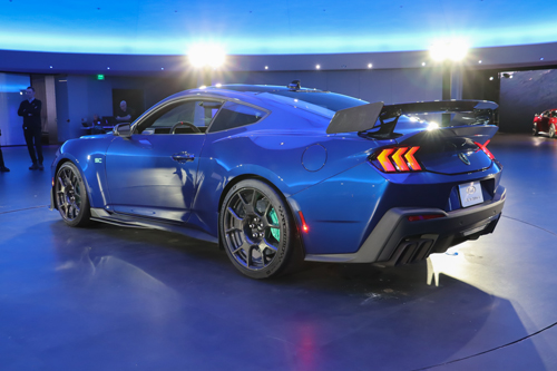 That “SC” badging (finished in teal, if you so wish), isn’t just some fun alphabet-soup gag (and don’t mix it up with “CS”; that’s also a Mustang trim, but it stands for “California Special” and is a much tamer animal); it stands for “supercharged” because sitting atop the SC’s 5.2-litre V8 is a 3.0-litre roots-style supercharger. Power figures have not yet been announced, but Ford did say that the SC slots between the 500-horsepower Dark Horse and 815-hp GTD in the line-up, so we’re expecting a power figure starting with a seven, and a sub three-second 0-100 km/h time on to a top speed of at least 290 km/h.