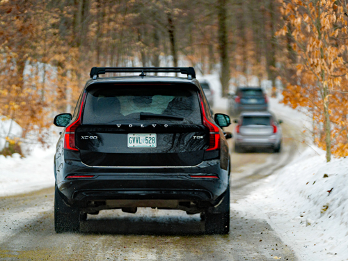 Snowflakes drift lazily through the morning air as the XC90 glides out of the Fairmont Château Montebello’s circular driveway. The Ottawa River lies frozen nearby, while the forested hills of western Quebec stretch endlessly ahead.