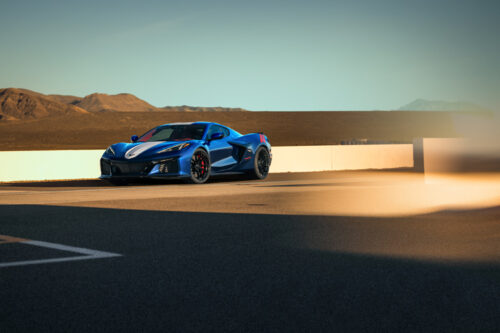 Styling-wise, the famous Admiral Blue colour returns (with a new Pitch Grey colour option for all Corvettes) as do the red hash marks although those have been moved to the rear fenders instead of the fronts because, well, that’s where the engine is in the current gen ‘Vette. A Launch Edition model adds a blue interior with contrast red stitching, as well as some special badging and a red line on the gauge hood that lines up with the steering wheel’s red centering band.