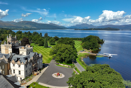 The property traces its roots back centuries, evolving from a baronial mansion built by the Smollett family into one of Scotland’s most celebrated luxury retreats. The estate sits on more than 400 acres along the loch’s southern shoreline, and the original mansion, complete with turrets, gables and classic Scottish stonework, remains the heart of the resort today.