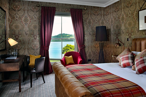 Many of the guestrooms face the loch, and when the Scottish light breaks through the clouds, the view can be breathtaking. Early mornings often bring mist drifting across the water, while sunset paints the surrounding hills in shades of gold and deep green.