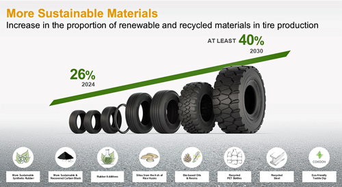 Continental has made renewable and recycled materials a cornerstone of its production strategy. In 2024, roughly 26 percent of the materials used in its tires were sustainable. That figure is expected to climb by another two to three percentage points this year, with a longer-term target of at least 40 percent by 2030.