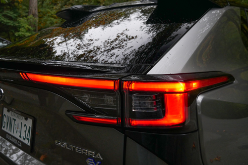 You won’t see the fruits of that labour in the exterior, however; the wheel choices are the same as previous – there are 18- and 20-inch options, our tester was equipped with the latter – the headlights are the same (and better looking than the items found on the Solterra’s Toyota bZ4X twin) as are the taillights. Our tester did wear the new Smoked Carbon exterior colour, however, and it looks rather fetching and stealthy. You still have the standard contrast-colour wheel surrounds but somehow, all the chunky styling fits the Solterra better than it does the Toyota. It just jives better with the Subaru brand, which has always had a bit of a rough-and-tumble attitude while Toyota has been more of a Japanese car or SUV that’s trying to look American. Nice as the Solterra’s new colour is, though, I am sad that last year’s Elemental Red Pearl ‘do is no longer. The reason is simple: people weren’t buying it, so Subaru stopped doing it.