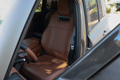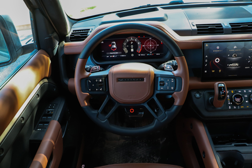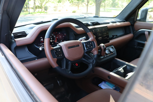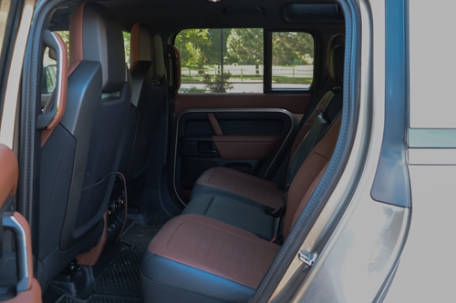 Back on the road – surprisingly quiet and comfortable, even with knobby off-road tires – I had the chance to enjoy the interior environs of this most hardcore of showroom-spec Defenders. The OCTA has heated and cooled front seats, heated rear seats (cooled if you spec the captain’s chairs), Meridian audio, digital rear-view mirror, automatic climate control, 11.4” infotainment display and the very unique Body and Soul Seats (BASS).
