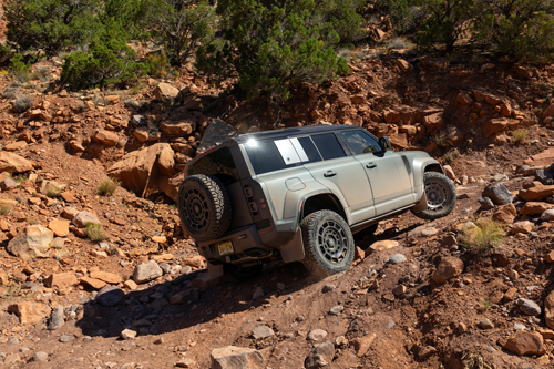 With a selection of drive modes (we chose Rock Crawl for this jaunt) and an all-new “6D Dynamic” suspension system that provides massive wheel articulation, the OCTA clambered over everything with no complaint. To help further instill confidence, the central display inside can be set to show a camera that looks over each front wheel. That’s handy when you have a panel-shearing rock wall on one side, and about a foot between said wheel and a 100-foot drop on the other.