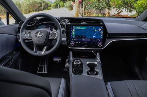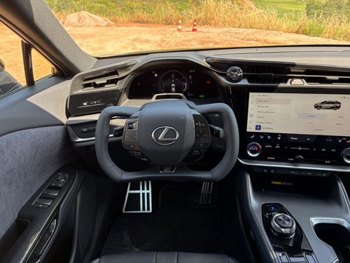 So, we’re stuck with a traditional steering system (complete with full-round wheel and steering column) for now, but there’s plenty of new goodness added to the RZ 550e F Sport that we get to enjoy.