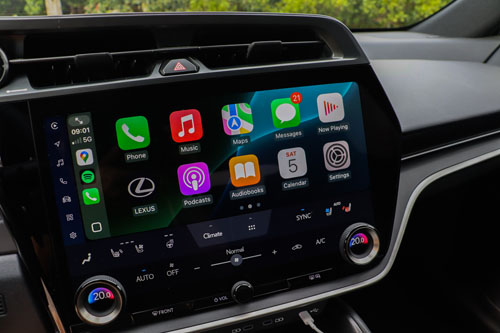 Inside, F Sport touches include special seats with Ultrasuede finish, badging and some contrast-colour stitching. Be forewarned: the seats have slightly taller side bolsters that will squeeze the wider hip- and ribbed among us, a category in which yours truly finds himself. Otherwise, inside there’s good headroom both front and back, standard 14” infotainment display with wireless Apple CarPlay, Android Auto and charging (plus five USB-C ports if you prefer) and digital gauge cluster. Which, as it happens, hasn’t changed from last year and seems like it’s been around since the Silent Era. Would have been nice to see an upgrade there as it remains dim and somewhat blurry.