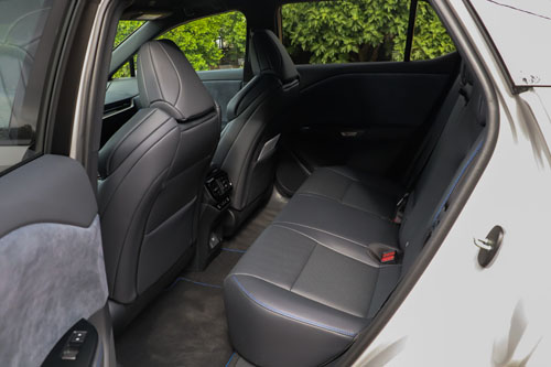 The RZ 550e F Sport gets special 20-inch wheels, blue brake calipers, additional front brake cooling vents, secondary spoiler and unique rear underbody diffuser. There’s also a new Wind colour that looks properly fetching. For its part, the 550e is the only model of the three available – a new-to-Canada 350e single motor front-wheel-drive, 450e and 550e F Sport, both with dual motor all-wheel-drive – that gets F Sport designation and the new styling touches.