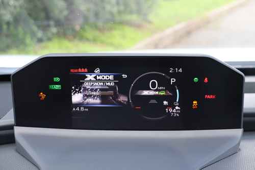 Then, when perhaps a steep, slippery climb needs to be completed, power can be distributed more evenly to achieve as much purchase as possible. How aggressively this all happens changes depending on which of the two X-Modes you’ve selected via a push of a button mounted right of the joystick-style gear selector.