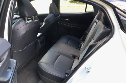 Storage-wise, you’re going to want to make use of the adjustable-height cargo floor because the steep slope of the rear glass means you can’t load things too high back there. Having the digimirror helps because your gear won’t obstruct your view out the back but remember: that comes only on the top trim. Oh, in case you’re asking: no, there is no frunk. None of the Toybaru EVs get one because that’s where they’ve stored the AC system, EV motor and so on. Luckily, the rear seats fold nice and flat with a tug of a shoulder-mounted lever, providing 1,685 litres of cargo space.