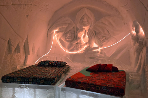 Behind the scenes, it all starts in December. Armed with snow-makers, chainsaws, and an eye for art, a crew of 50+ artisans, architects, and engineers transform 30,000 tons of snow and 500 tons of ice into a surreal, sculpted wonderland. Every year features a new theme—past years have explored mythology, nature, and outer space—making the hotel a living (well, slowly melting) gallery.
