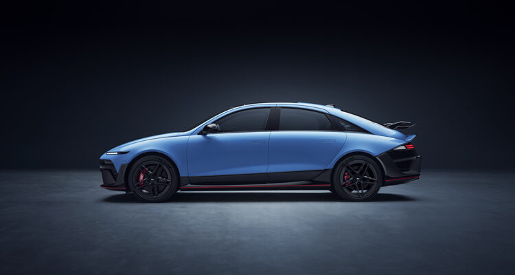 It looks remarkably like the concept; from the narrow headlamps, to the GT-style swan neck rear wing, Performance Blue Pearl paintwork, dark wheels and signature N red band at the base of the doors, you can tell this is not your average Ioniq 6. Which is a bit of a feat because the Ioniq 6 hardly looks “average” in any way in stock form, let alone in high-performance guise.