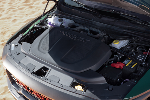 In addition to the special adaptive shocks, other off road-ready kit includes a Dana 60 heavy duty rear axle with up to 14” of travel, performance adaptive shocks that can adjust in anticipation of a landing – yes, Ram expects folks to be jumping these things – and hydraulic jounce control shock internals. All of this is governed by eight drive modes – yes, Baja mode is back – nine if you include the “don’t touch anything because the car won’t let you” valet mode. Underneath it all, we find optional full-length rock rails, standard steel bumpers, and dual 5” exhaust tips. Needless to you’re not only going to be able to see the TRX SRT; you’re going to be hearing it, too.
