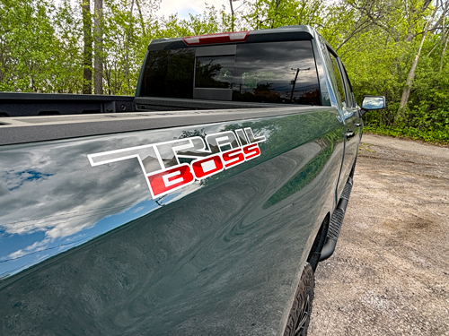 Our tester had optional 4-inch round steps installed—a $1,135 dealer add-on—and the Trail Boss decal proudly displayed to differentiate this trim.