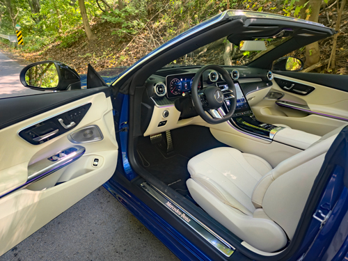 The route along Lakeshore Road offers a series of relaxed bends, and the CLE settles into them with assurance. Despite its size, the cabriolet never feels cumbersome. With standard 4MATIC all-wheel drive and the optional 20-inch AMG multi-spoke wheels, steering is direct and predictable. Even with the large wheels, the suspension doesn’t crash or complain over rougher county pavement.