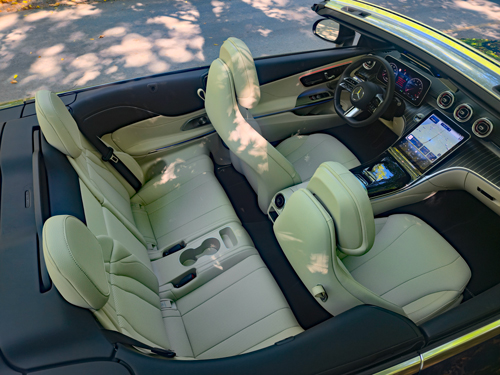 Top down, the morning air immediately becomes part of the experience. The car’s Aircap wind deflector and subtle cabin aerodynamics make conversation easy, even at speed. And when the temperature dips, Mercedes’ familiar Airscarf neck warmers turn shoulder-season drives into something you look forward to rather than tolerate.