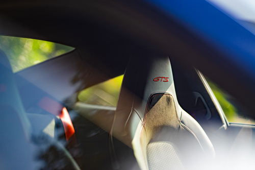 Visually, the GTS has always walked the line between subtle and aggressive, and the 2025 model perfects that balance. The Lugano Blue paint sparkles brilliantly under the sun, giving the car a distinctive but tasteful presence. Our tester featured a carbon fibre roof and carbon fibre mirror caps, both of which reduce weight while adding motorsport-inspired flair.
