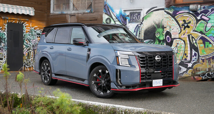 It’s quite a thrill to drop a couple of cogs in the 9-speed transmission and step on it, letting your four-ton-plus body-on-framer spear down the road with gumption. Makes a great sound, too, even though it has a single exhaust. That kind of power is more than enough for this rig, and also helps it tow up to 3,856 kg (8,500 lbs.). The photos that Nissan passed around to select media when the Armada NISMO debuted had it towing a Nissan Z NISMO, and I have no doubt that it would be able to undertake that task with little complaint.