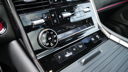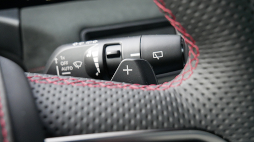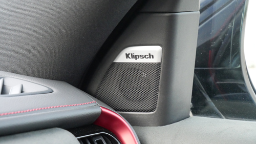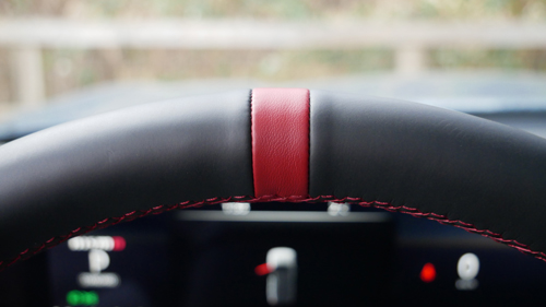 We also find red piping on the dash and front centre armrest as well as stitching on the steering wheel hub and the rim gets a red centering band, matched by anodized red inserts ‘round the vents and on the start/stop button. It’s a darn good take.